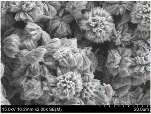 该材料主要通过化学气相沉积法,与湿化学法制备。化学气相沉积法通常是以有机锌盐作为锌源,氧气作为反应气体,氩气作为载气,在高温环境下,通过锌与氧气的氧化还原作用,使氧化锌生成并沉积在基片上。化学气相沉积法通常用于制备氧化锌阵列,所制备的产物均匀,但是产量较低、设备成本和生产成本高、影响因素多。另外一种方法是采用湿化学法制备氧化锌纳米单晶粉体。通常采用水热法、溶剂热等方法制备纳米棒、纳米花等氧化锌单晶结构。以上两种方法均可以获得形貌可控的氧化锌纳米单晶体,但设备成本和生产成本高、影响因素多、产量较低。